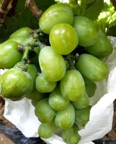 超級(jí)特大無核葡萄:8月份成熟,成熟后可在樹上掛到下霜,果粒特大,粒重35~40克,無核,果面亮麗,外觀美麗漂亮,可以剝皮吃,味道清香、肉脆、果汁多,成熟時(shí)間和巨峰同期,掛樹時(shí)間特別長(zhǎng),極耐貯運(yùn),早果豐產(chǎn),極易成花,極易栽培,特抗病,豐產(chǎn)、穩(wěn)產(chǎn),在國(guó)內(nèi)栽培表現(xiàn)果實(shí)更大,可達(dá)到50克以上(小雞蛋一樣),果肉細(xì)滑有彈性,吃起來有果凍的感覺,口感絕佳,該品種的試種成功,把我國(guó)特大粒葡萄品種徹底打垮,缺陷就是在山東、河南顏色是黃綠色或者淺粉紅色(著色沒有原照那么紅),果實(shí)早采的情況下和陽光玫瑰的顏色差不多,加上一層果粉,很有高級(jí)之感,如果你有遠(yuǎn)見,快發(fā)展葡萄果王,大粒葡萄品種沒有超過葡萄果王的。