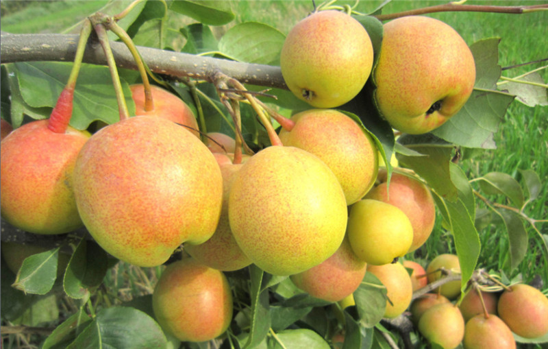 該產(chǎn)品8月底-9月初成熟,屬中熟品種。樹冠中等大,圓頭形,長勢中庸,枝勢較開張。萌芽率高,成枝力較強。以短果枝結(jié)果為主。葉片卵圓形,葉緣細鋸齒?;ü诜奂t色。果實紡錘形或長卵圓形,平均單果重220克。果面潔凈、光滑,果點中等大、較密。果皮綠黃色,向陽面紅色。果肉白色,石細胞較少,汁多,味甜,有香味??扇苄怨绦挝锖?2~14%。常溫下,貨架期可達2個月。盛果期嚴格疏花疏果,畝產(chǎn)控制在2000~2500公斤。