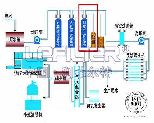 3、慢沖洗(置換):在用鹽水流過樹脂以后,用原水以同樣的流速慢慢將樹脂中的鹽全部沖洗干凈的過程叫慢沖洗,由于這個沖洗過程中仍有大量的功能基團上的鈣鎂離子被鈉離子交換,根據實際經驗,這個過程中是再生的主要過程,所以很多人將這個過程稱作置換。這個過程一般與吸鹽的時間相同,即30分鐘左右。