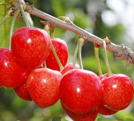 湖北櫻桃苗:薩米脫又名“皇帝”,成熟期6月中下旬,果實特大,單果重10—12克。果形長心臟形,果個均勻艷麗。果實初熟時為鮮紅色,完熟時為紫紅色,果皮上有稀疏的小果點,色澤亮麗。果肉紅色,肉脆多汁,含可溶性固形物17.9%,風味濃厚,品質(zhì)佳。果柄短粗,不易落果。樹勢強健,豐產(chǎn)性好。不抗裂果,抗寒抗旱,極豐產(chǎn),為中晚熟品種,批發(fā)價高于其它品種,發(fā)展前景極好。