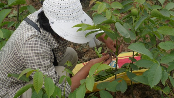 桃樹苗從苗圃地挖出后,根系已受到傷害,為減少受傷面積,要進(jìn)行整理。用剪子去掉部分主根,大的側(cè)根從受傷處剪平,不要斜剪,傷口容易恢復(fù)。