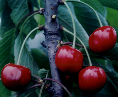 洛陽櫻桃苗:“早大果”,1997年從烏克蘭引進,果實大,近圓形,單果重7-9克,略高于對照紅燈,果13-15克;果實深紅色,充分成熟紫黑色,鮮亮有光澤;果肉較硬,可溶性固形物16.1-17.6%,略高于對照紅燈。成熟期比紅燈早3-5天,在中原地區(qū)5月10-17日成熟,果實發(fā)育期35天左右,屬早熟品種。
